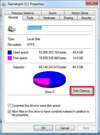 Tại thẻ General bạn chọn Disk Cleanup